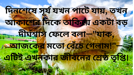 ২০. দিনশেষে সূর্য যখন পাটে যায়, তখন আকাশের দিকে তাকিয়ে একটা বড় দীর্ঘশ্বাস ফেলে বলা—”যাক, আজকের মতো বেঁচে গেলাম!”—এটিই এখনকার জীবনের শ্রেষ্ঠ তৃপ্তি।