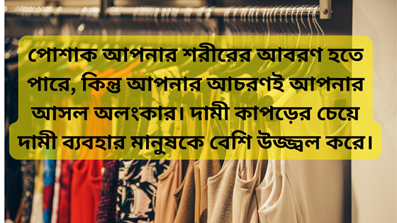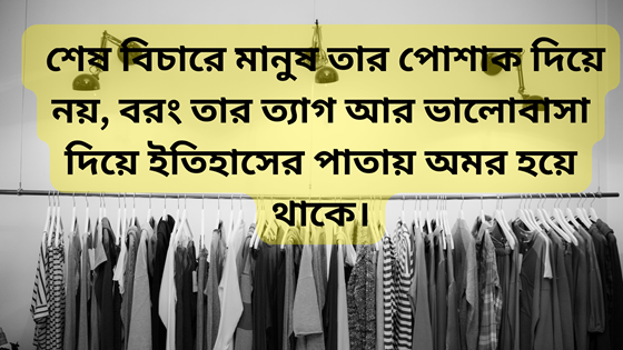 ২০. দিনশেষে পোশাক কেবল একটি আবরণ নয়, এটি আপনার রুচির নীরব স্বাক্ষর যা কালের গহ্বরে আপনার ব্যক্তিত্বকে বাঁচিয়ে রাখে।