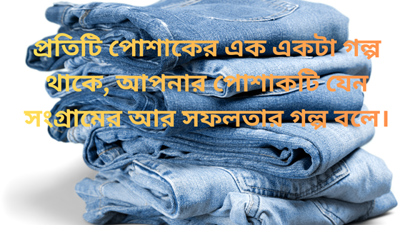 পোশাক শুধু জামা কাপড় নয়, এটা আমাদের মনের ছবি। এটা আমাদের হাসি আর খুশির সাথী। পোশাক পরে আমরা নিজেকে ভালোবাসি, নিজের গল্প বলি। তাই যা পছন্দ, তাই পরো। নিজের মতো হয়ে হাসি ছড়াও। পোশাক তোমাকে সুন্দর করে, তাই প্রতিদিন নিজেকে একটা উপহার দাও।