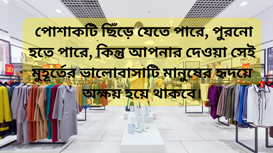 ২০. পোশাকটি ছিঁড়ে যেতে পারে, পুরনো হতে পারে, কিন্তু আপনার দেওয়া সেই মুহূর্তের ভালোবাসাটি মানুষের হৃদয়ে অক্ষয় হয়ে থাকবে।