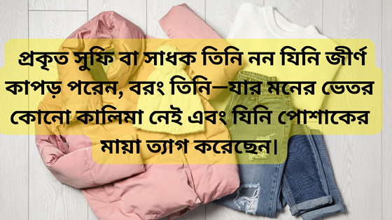 ১৯. প্রকৃত সুফি বা সাধক তিনি নন যিনি জীর্ণ কাপড় পরেন, বরং তিনি—যার মনের ভেতর কোনো কালিমা নেই এবং যিনি পোশাকের মায়া ত্যাগ করেছেন।