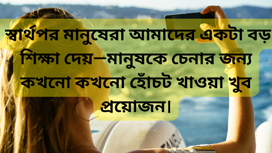 ৬. স্বার্থপরতা হলো একটি আয়না, যা অন্যকে বিচার করার আগে আমাদের নিজেদের বিশ্বাসের ভিত্তি পরীক্ষা করে নেয়। আপনি কার ওপর কতটা আস্থা রাখবেন, তা শেখায় এই তিক্ত অভিজ্ঞতা।