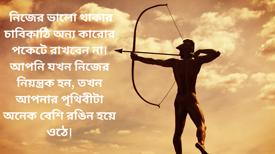 ১৯. নিজের ভালো থাকার চাবিকাঠি অন্য কারোর পকেটে রাখবেন না। আপনি যখন নিজের নিয়ন্ত্রক হন, তখন আপনার পৃথিবীটা অনেক বেশি রঙিন হয়ে ওঠে।