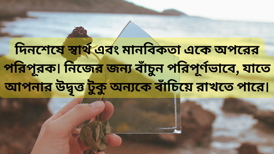 ২. মানবিকতার ছায়া তখনই দীর্ঘ হয়, যখন আপনি নিজের প্রয়োজন মিটিয়ে অন্যের অভাবের দিকে হাত বাড়িয়ে দেন। স্বার্থ আর ত্যাগের মিলনই সুন্দর জীবন।