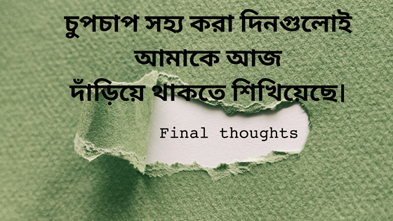 ১০. কিছু কিছু সময় আমরা যা ভাবি তা সবটাই গোপন করে রাখি। হয়তো এটাই মঙ্গল কিংবা সামনে থাকা মানুষটা অবুঝ।